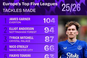 本赛季英格兰球员五大联赛铲球榜:加纳居首,奥赖利赖斯均在内