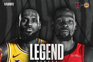 赛前火箭官方晒出詹姆斯和杜兰特的对决海报,写道:“见证传奇。🤝今晚将是自2018年总决赛以来,这两位巨星首次在季后赛中相遇。他们是NBA历史上唯一一对在季后赛交手超过10次,并且场均得分都超过30分的对手。”
