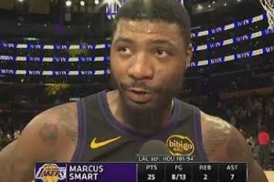 体育资讯4月22日讯 NBA季后赛,湖人在主场以101-94击败火箭,大比分2-0领先。赛后斯玛特在场边接受了媒体采访,以下为采访全文。