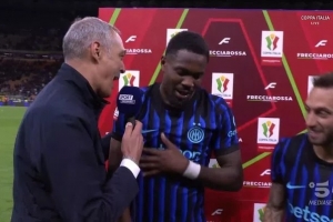 体育资讯4月22日讯 国米在意大利杯半决赛次回合3-2逆转科莫,小图拉姆接受了慢镜头的赛后采访。